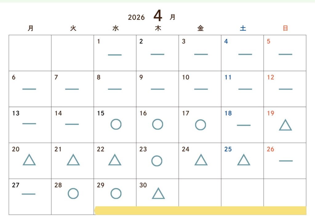 ◯…ご依頼受け付け中 △…時間より受け付け ー…受け付け不可