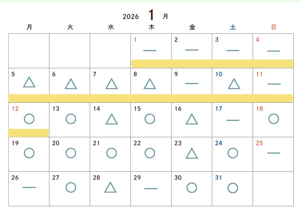 12月・1月のご予約状況のお知らせ